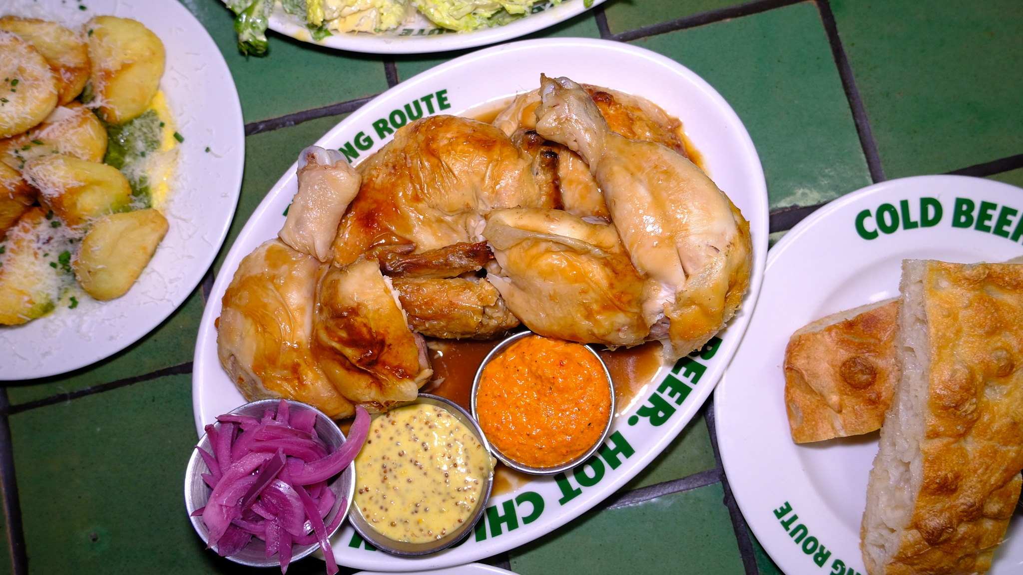 Rated by The Telegraph as one of top 5 places in the country for it (“a vibey place for beer and rotisserie chicken – what better combination could there be?”), the cornerstone of our full menu is freshly roasted chicken served with house pickles and finished with beer salt crumb. Simply choose your size (whole or half), select whether to marinade it in our classic herb oil or today’s special, pick your sauce, and decide if you want our signature chicken gravy or chip shop curry to pour over it, and we’ll carve it hot out of the oven and straight to your plate.