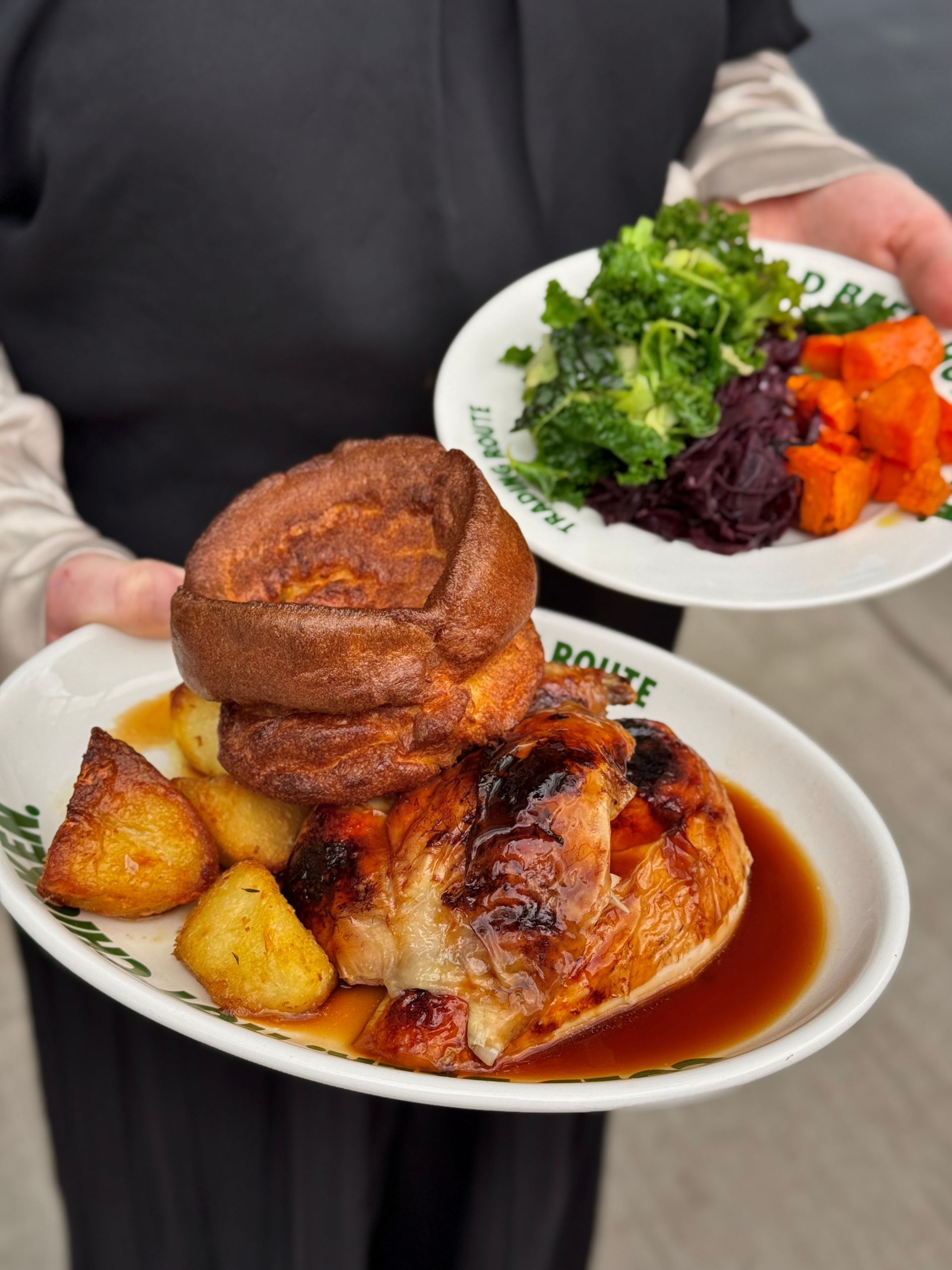 Beyond the rotisserie, we serve a full food menu, including sandwiches served on focaccia, freshly baked in-house, plus Bratwurst (both meat and vegan), our much-loved Bavarian Manc & Cheese, classic desserts (try the Manchester Tart), bar snacks, and much more besides.